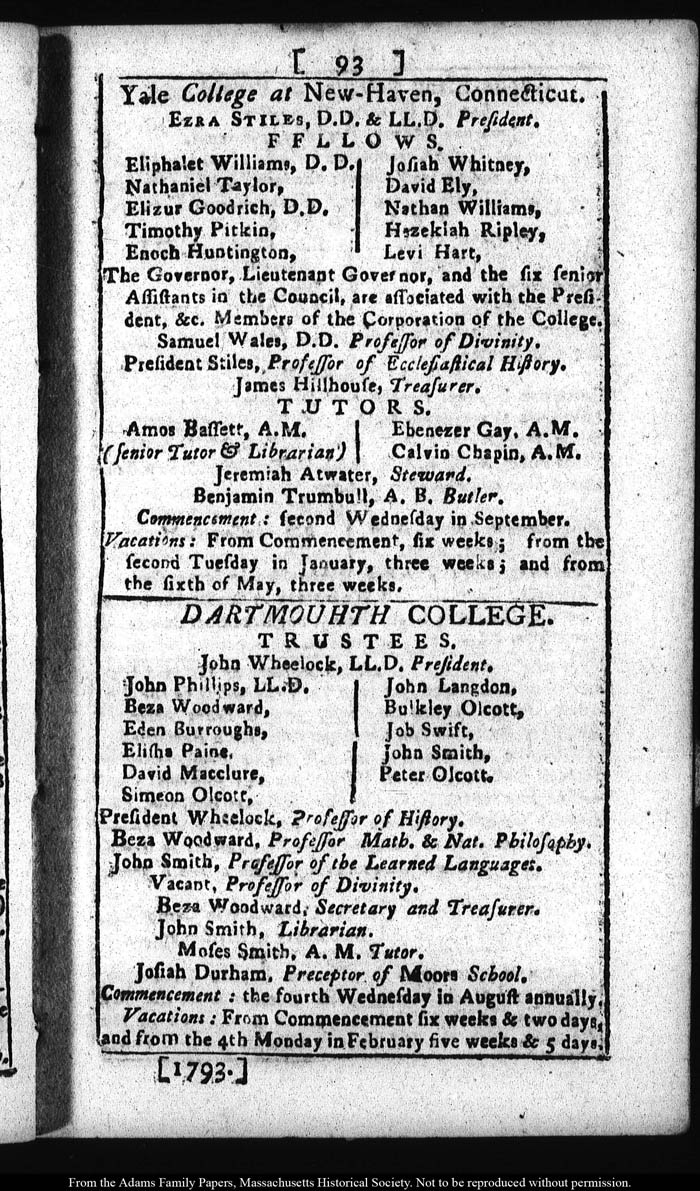 John Quincy Adams diary 19 (almanac), 1793, page 143