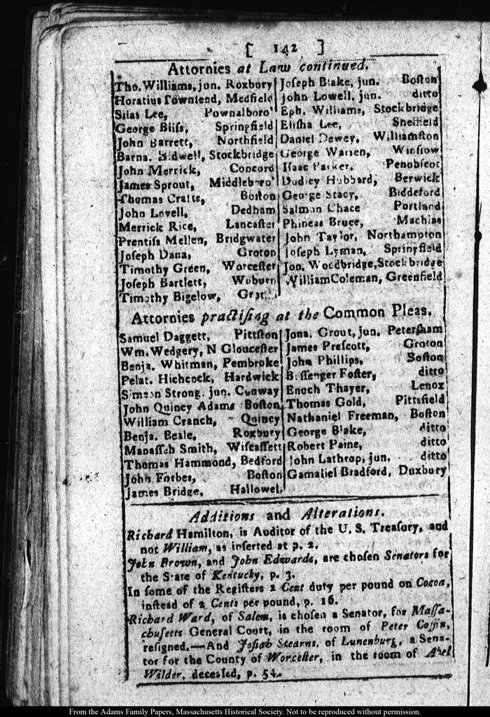 [note: Published page of Fleets Massachusetts Register for