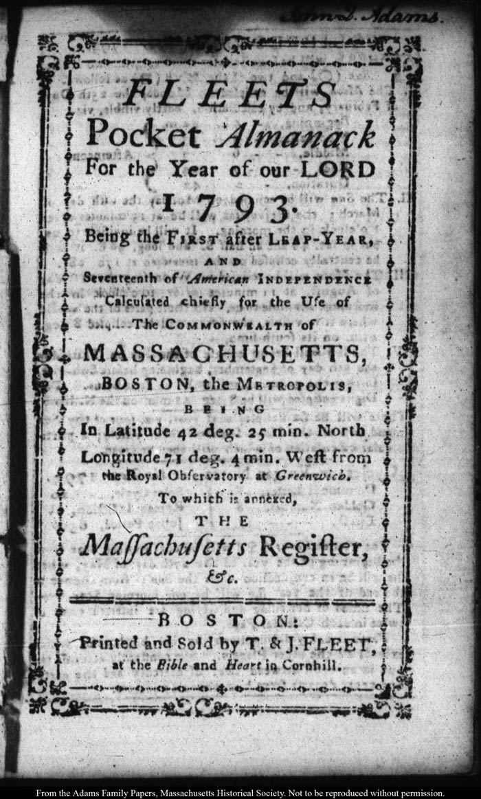 Fleet's Pocket Almanack For the Year of our Lord 1793