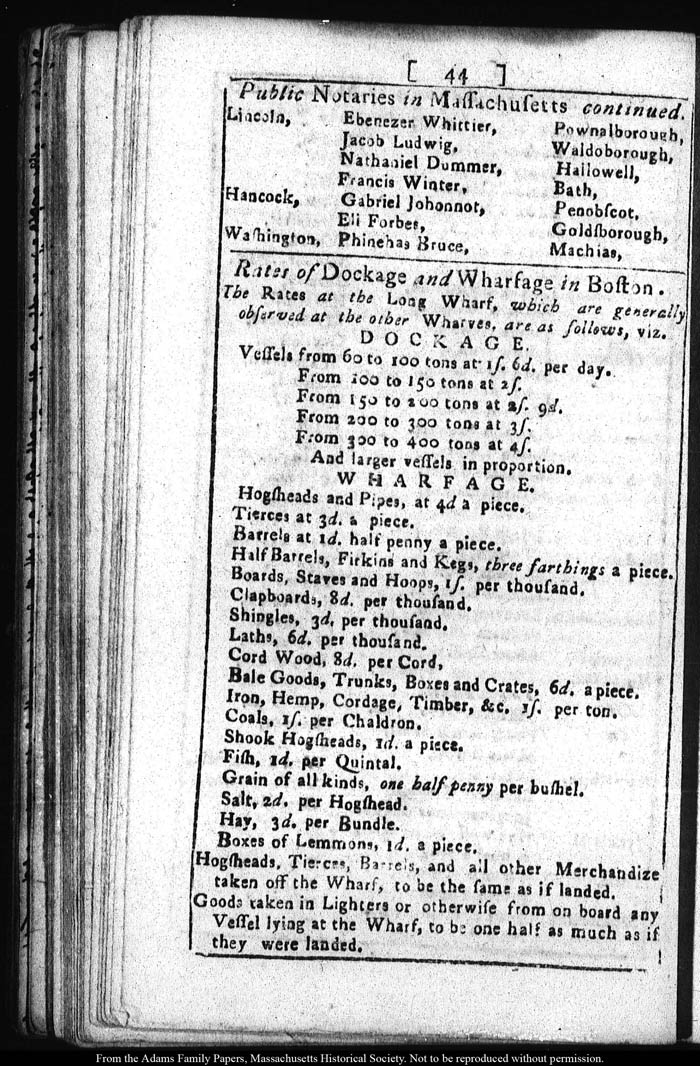[note: Published page of Fleets Massachusetts Register for