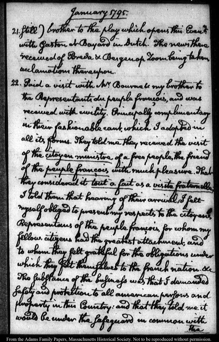 View full, authoritative transcriptions with page images of the diaries at John Quincy Adams Digital Diary part of the Primary Source Cooperative at the MHS.