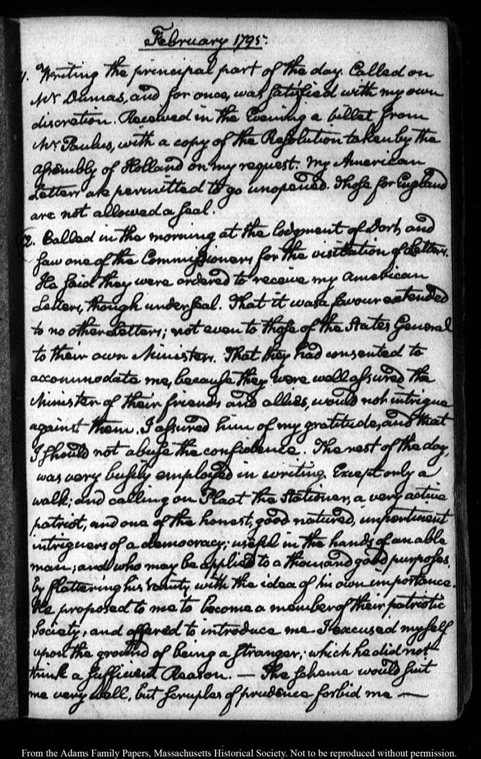 View full, authoritative transcriptions with page images of the diaries at John Quincy Adams Digital Diary part of the Primary Source Cooperative at the MHS.