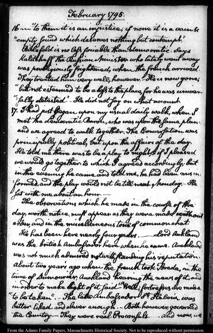View full, authoritative transcriptions with page images of the diaries at John Quincy Adams Digital Diary part of the Primary Source Cooperative at the MHS.