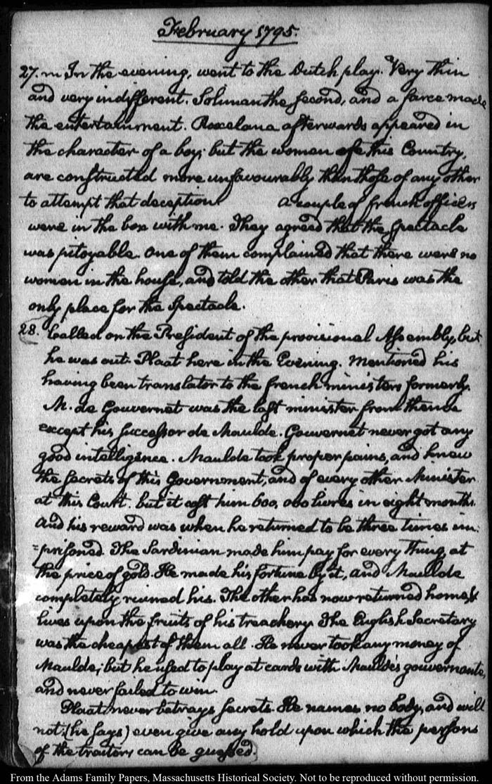 View full, authoritative transcriptions with page images of the diaries at John Quincy Adams Digital Diary part of the Primary Source Cooperative at the MHS.