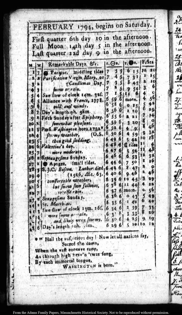 John Quincy Adams diary 22, (almanac), 1794, page 12