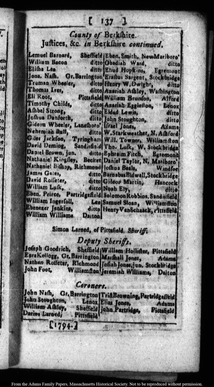 John Quincy Adams diary 22, (almanac), 1794, page 187