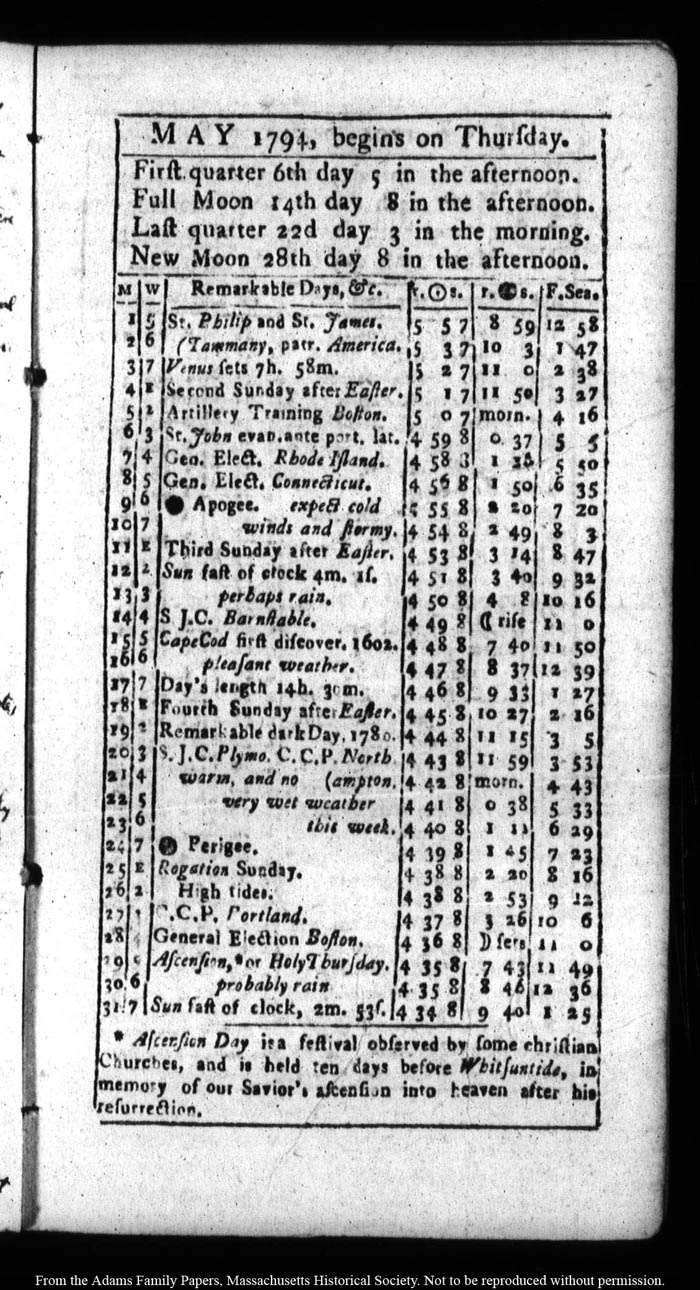 John Quincy Adams diary 22, (almanac), 1794, page 23