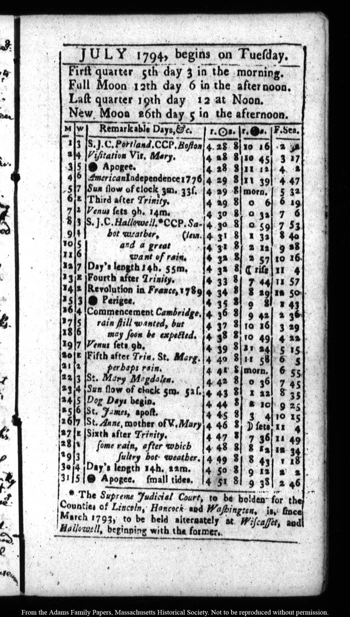 John Quincy Adams diary 22, (almanac), 1794, page 29