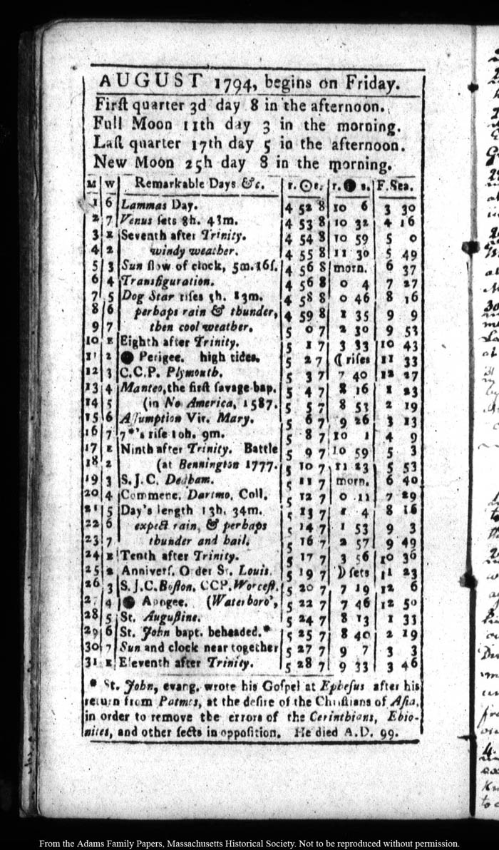 John Quincy Adams diary 22, (almanac), 1794, page 30
