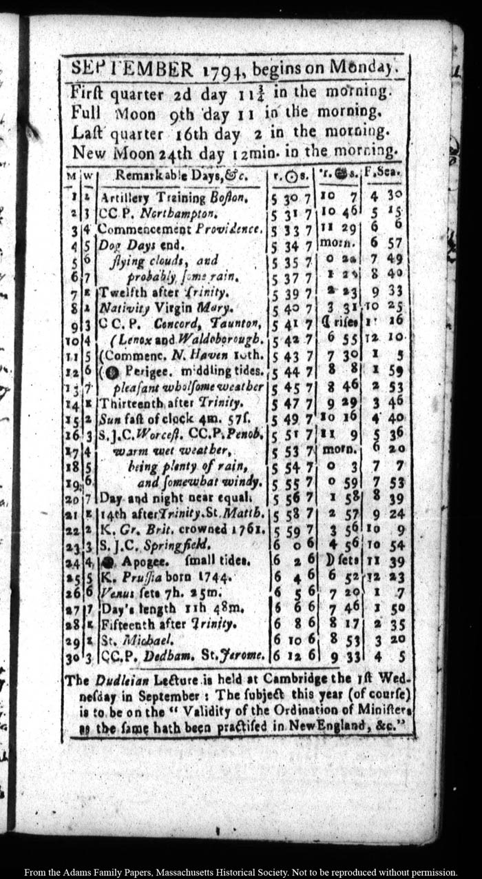 John Quincy Adams diary 22, (almanac), 1794, page 35