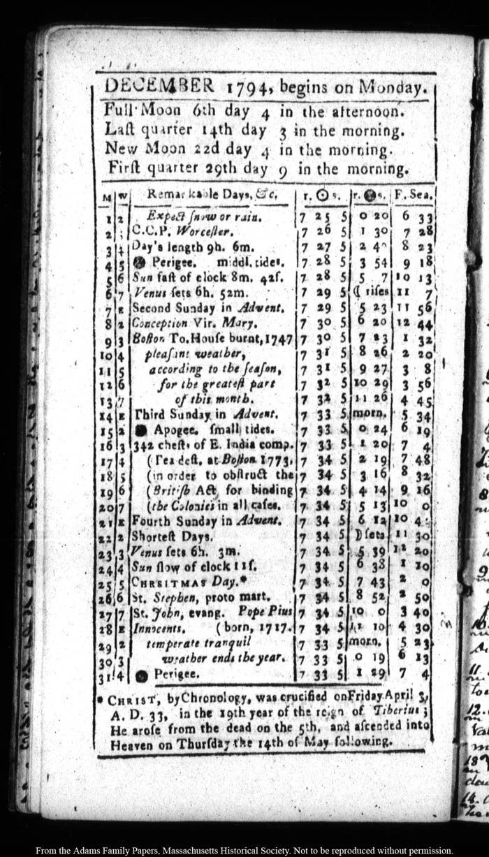 John Quincy Adams diary 22, (almanac), 1794, page 42