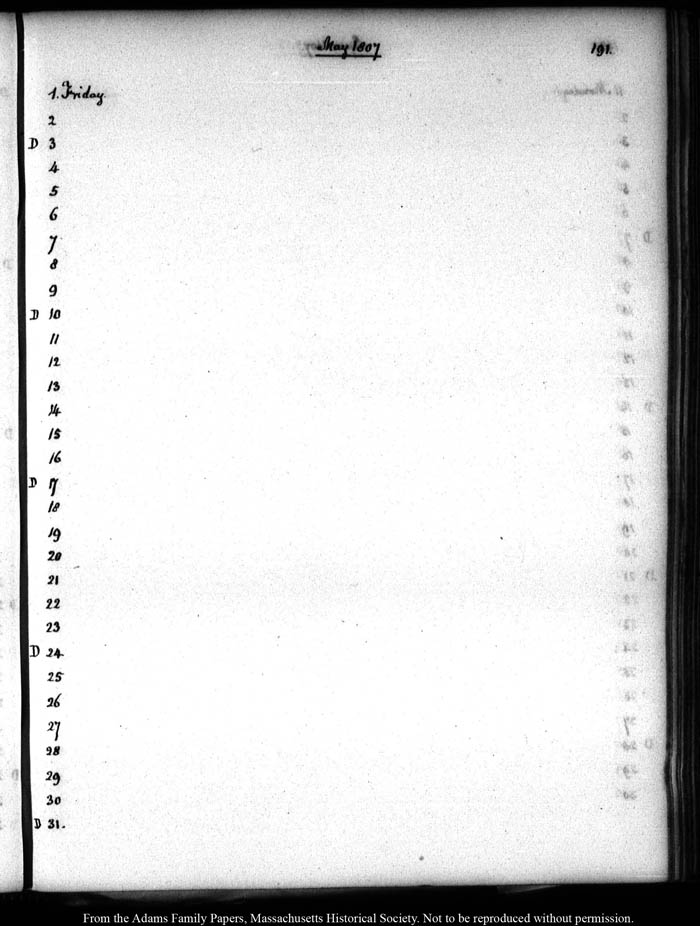 John Quincy Adams diary 23, 1 January 1795 - 12 May 1801, 5 August 1809 - 30 April 1836, page 191