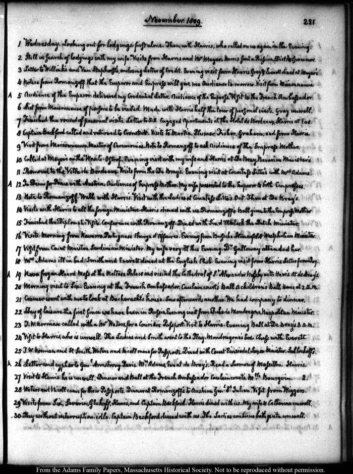 Harris to all the foreign Ministers- Harris dined with us. Romanzoff's Ball