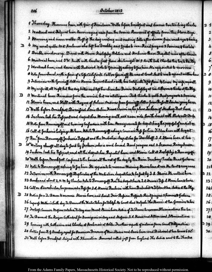 Jackson's lodgings. He here. Note to Romanzoff, asking a Courier's Pass for