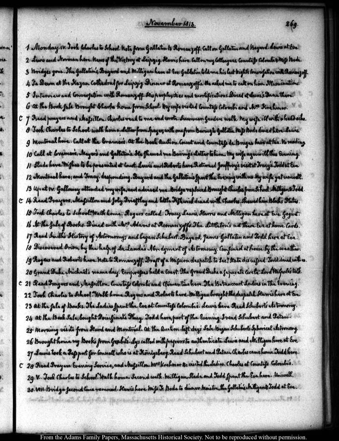 Took Charles to School. Note from Gallatin to Romanzoff. Call on Gallatin and