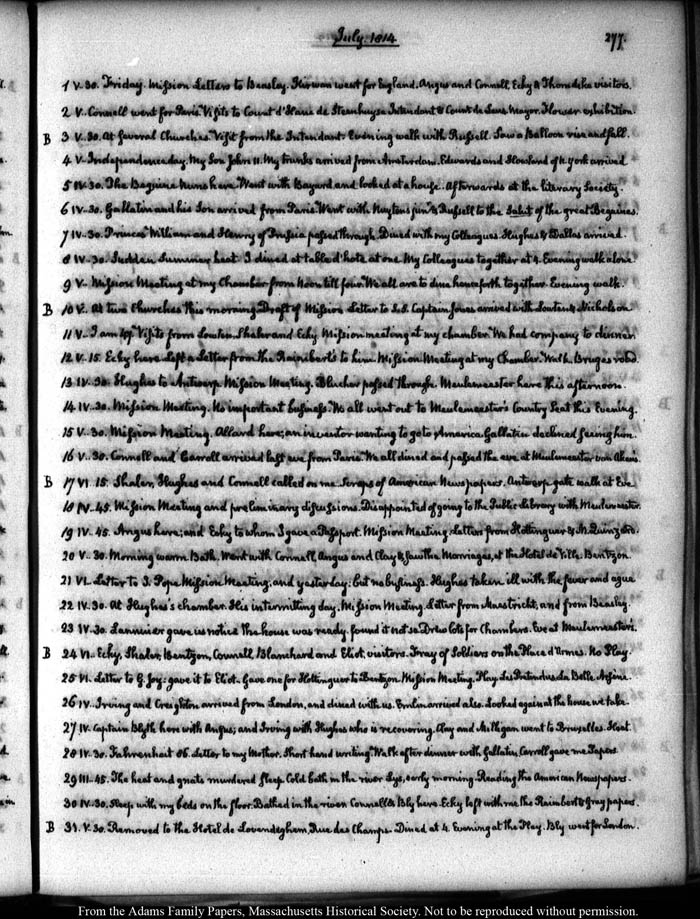 V: Independence day. My son John 11. My trunks arrived from Amsterdam. Edwards and Howland of N.York arrived.