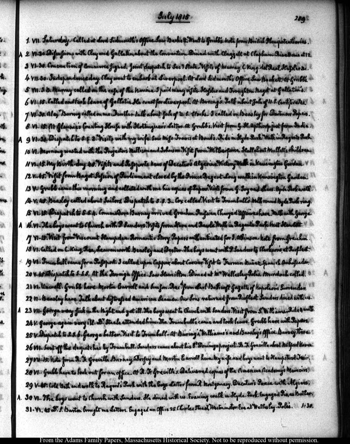 Independence day. Clay went to embark at Liverpool. At Lord Sidmouth's Office.
