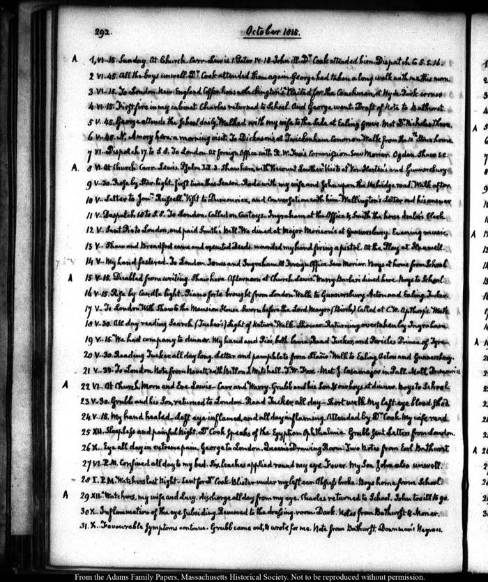 Confined all day to my bed. Six leaches applied round my eye. Fever. My Son