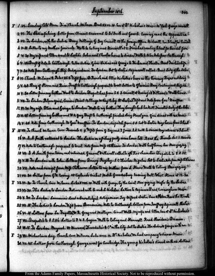 London with John. Letters from Quincy. Pugsley— S.C. Thacher. Bigelow. Sat to