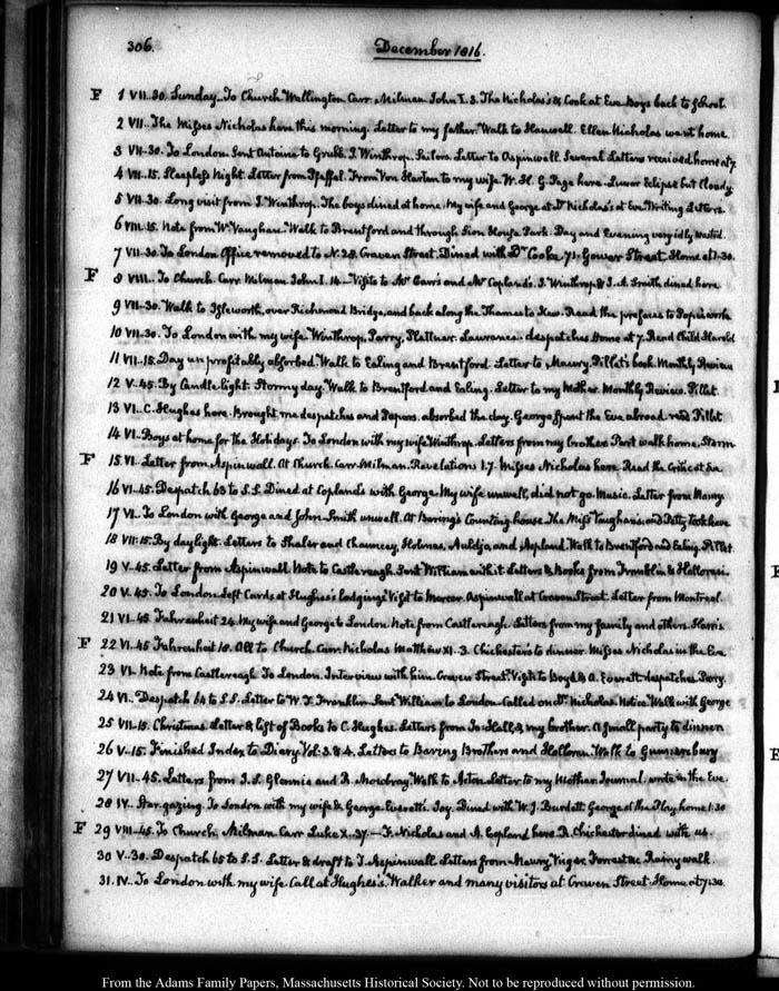 home for the Holidays. To London with my wife Winthrop. Letters from my