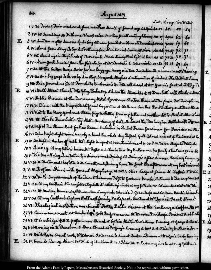 IV: New-York. landed from the ship. Lodge at Mrs Bradish's. E. Coles arrived. |40:42|74:08|67|67|