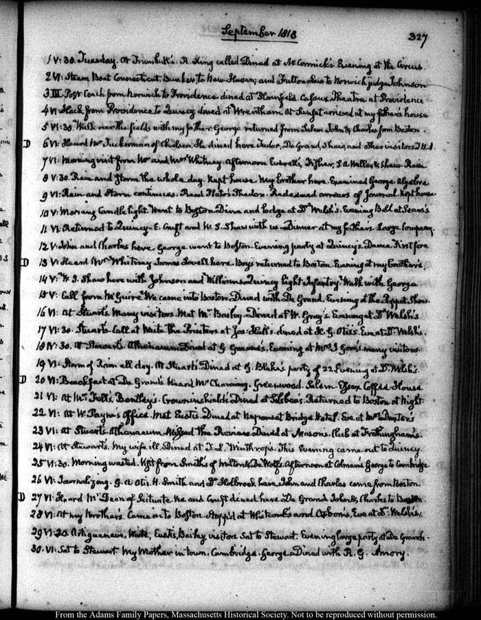 Charles here— George went to Boston. Evening party at Quincy’s. Dance. First
