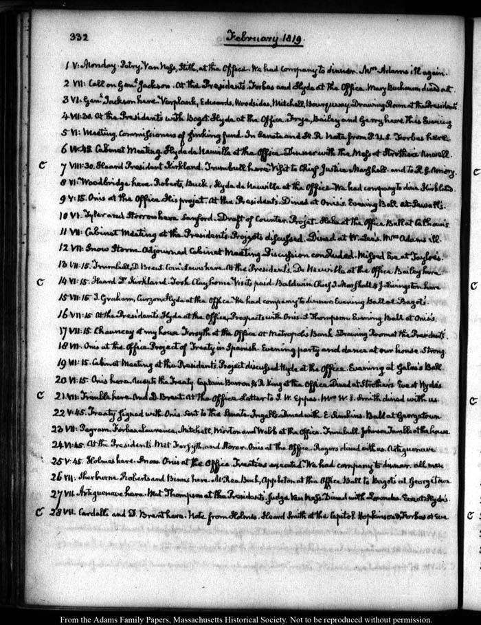 Treaty signed with Onis. Sent to the Senate. Ingalls. Dined with E. Simkins.