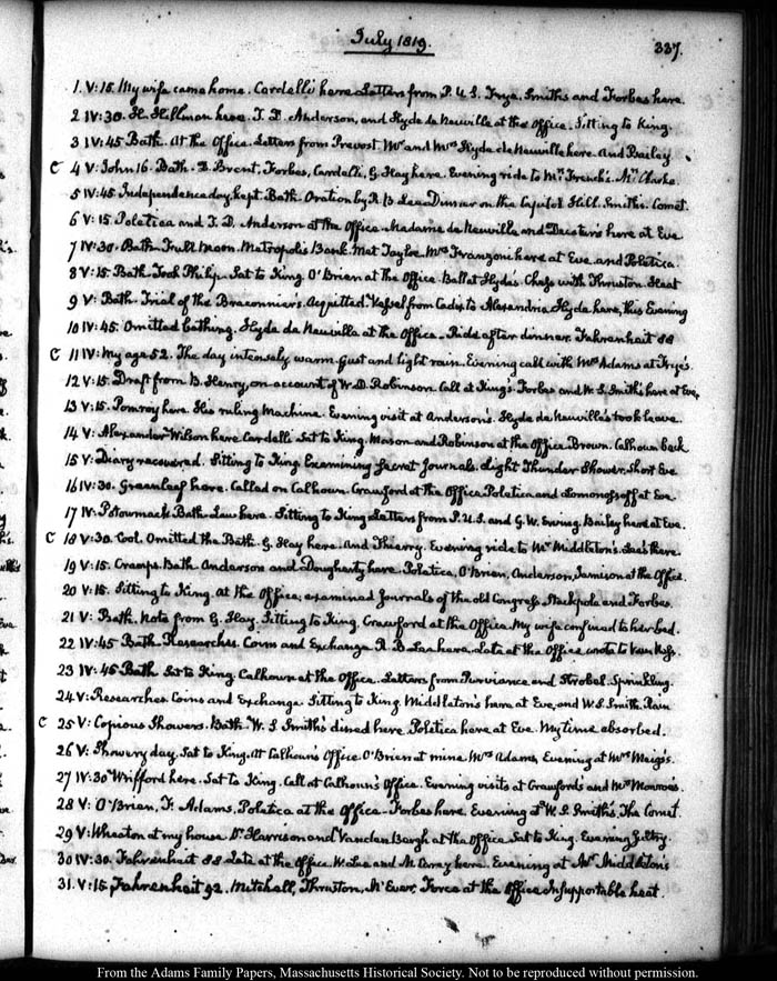 V: O’Brien, F. Adams, Poletica at the Office— Forbes here. Evening at W. S. Smith’s. The Comet.