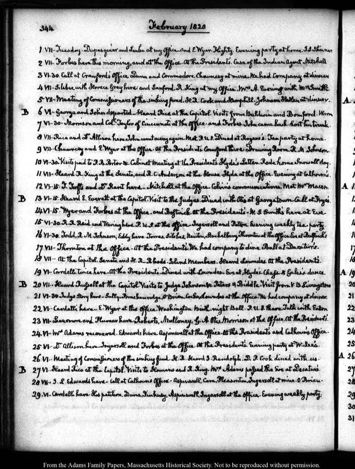 VI: Mrs Adams recovered. Edwards here. Aspinwall at the Office. At the President's and Calhoun's Office.