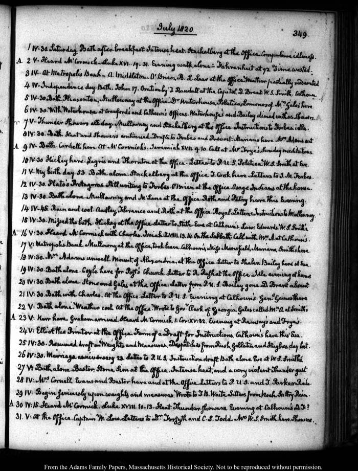 V:30. Heard M'Cormick with Charles. Isaiah LVIII.13.14. On the Sabbath. Call with Mrs. A. at Calhoun's.