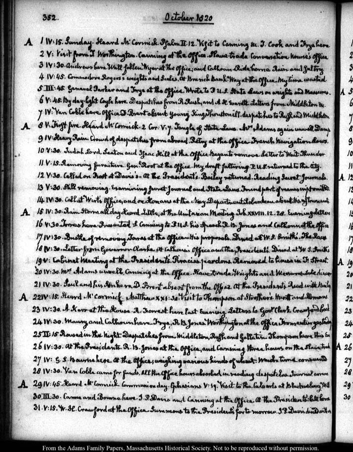 IV:30. Mrs. Adams unwell. Canning at the Office. Slave-trade. Weights and Measures. Late dinner