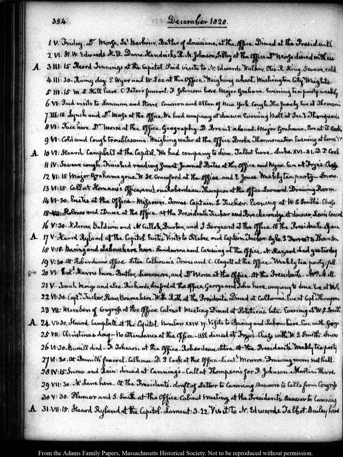 V: Josiah Meigs and Lee. Richards, Sanford at the Office. George and John here—company to dine. Eve at Wirt's.