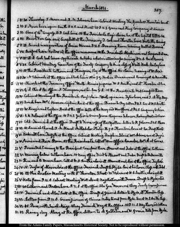 VI: At the President’s. Calhoun and Thompson. Clay at the Office. His claim. Evening at W. Lee’s—