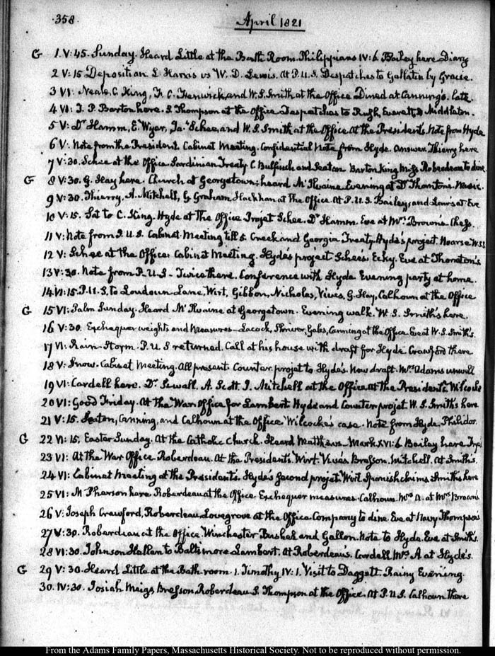 IV:30. Josiah Meigs, Bresson, Roberdeau. S. Thompson at the Office. At P.U.S. Calhoun there.