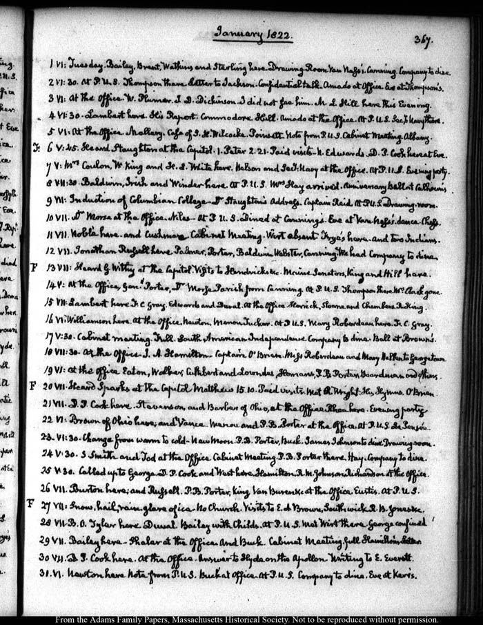 V:30. Cabinet meeting. Full. South American Independence. Company to dine. Ball at Brown’s.