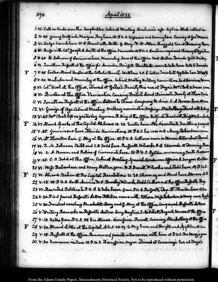 V:30. P.U.S. found Russell’s Letter. Poletica came with Ellisen. Miss Roberdeau & Mary came. Ruggles.