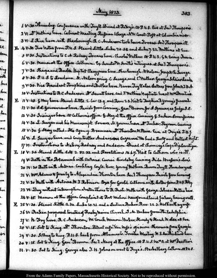 V: Instructions to R. C. Anderson. Dr Sewall here. and T. Watkins. Baptists— Eve at Mrs Decatur’s.