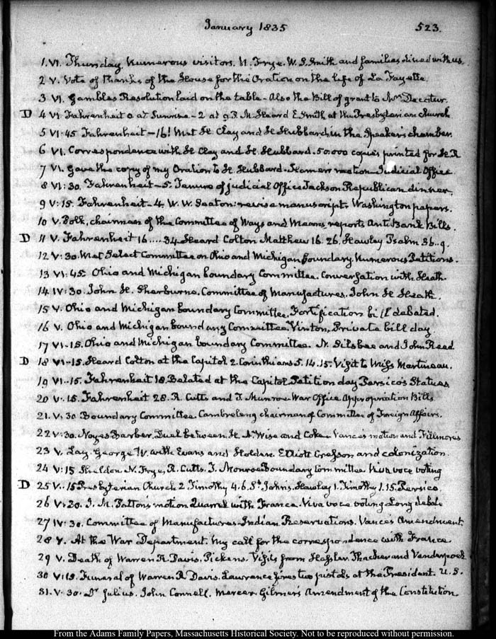 This is our legacy JQA diaries website and allows researchers to view the physical diaries page-by-page.