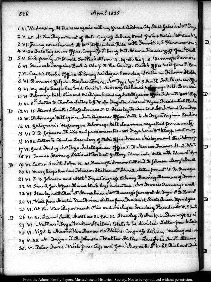 This is our legacy JQA diaries website and allows researchers to view the physical diaries page-by-page.