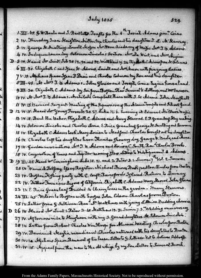 This is our legacy JQA diaries website and allows researchers to view the physical diaries page-by-page.