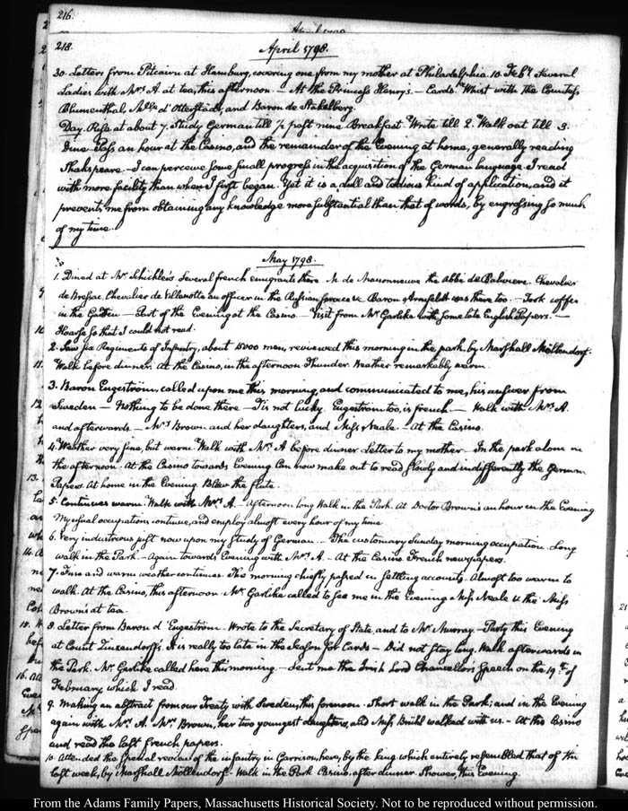 This is our legacy JQA diaries website and allows researchers to view the physical diaries page-by-page.