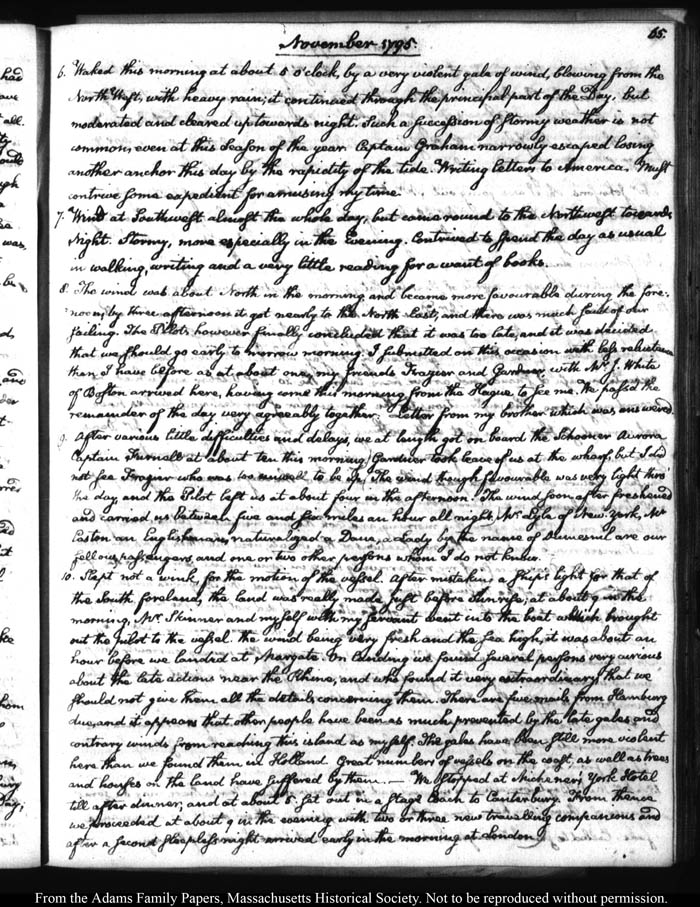View full, authoritative transcriptions with page images of the diaries at John Quincy Adams Digital Diary part of the Primary Source Cooperative at the MHS.