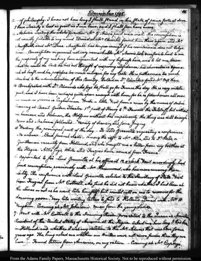 View full, authoritative transcriptions with page images of the diaries at John Quincy Adams Digital Diary part of the Primary Source Cooperative at the MHS.