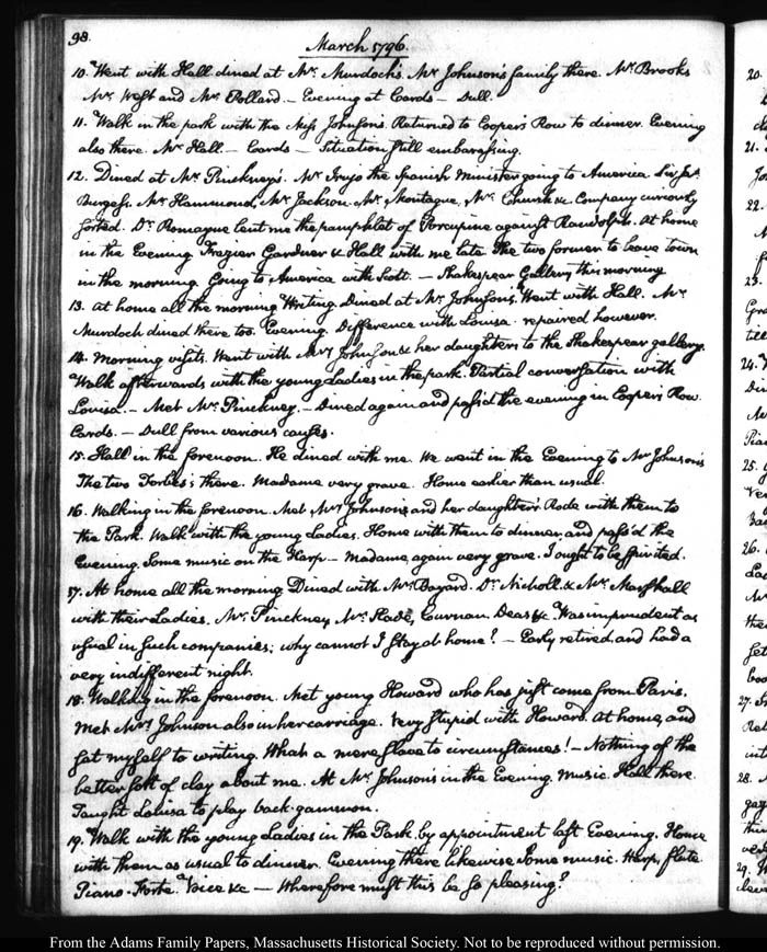 John Quincy Adams diary 24, 1 March 1795 - 31 December 1802, page 98