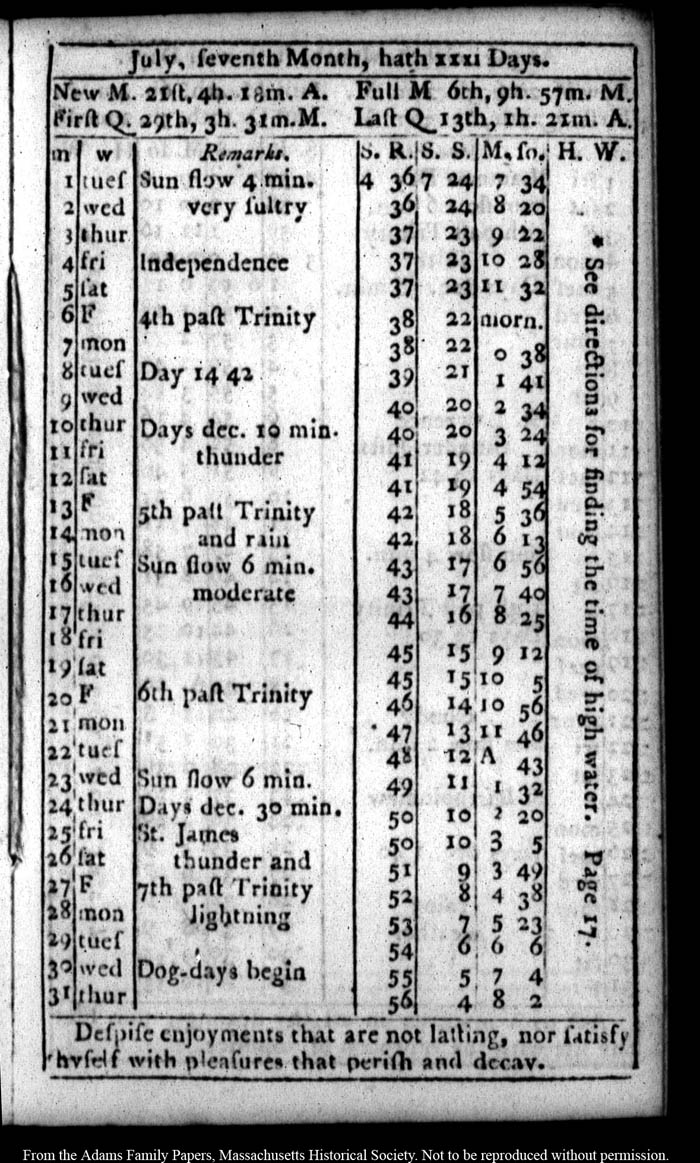 John Quincy Adams diary 25 (almanac), 1800, page 11