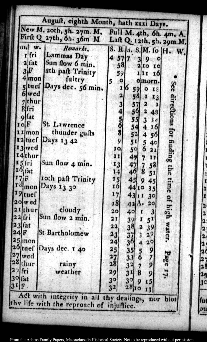 John Quincy Adams diary 25 (almanac), 1800, page 12