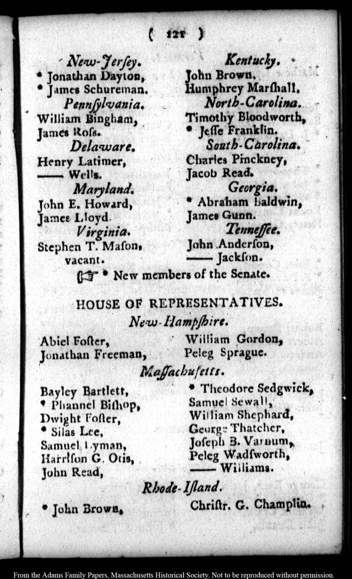 John Quincy Adams diary 25 (almanac), 1800, page 121