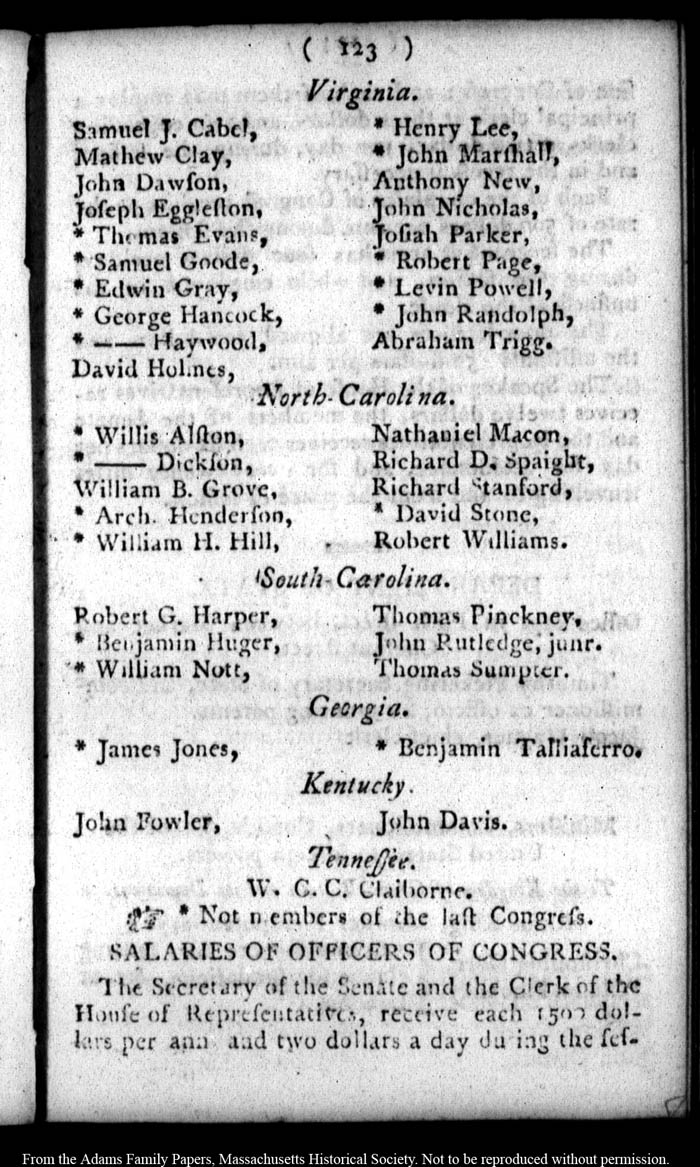 John Quincy Adams diary 25 (almanac), 1800, page 123