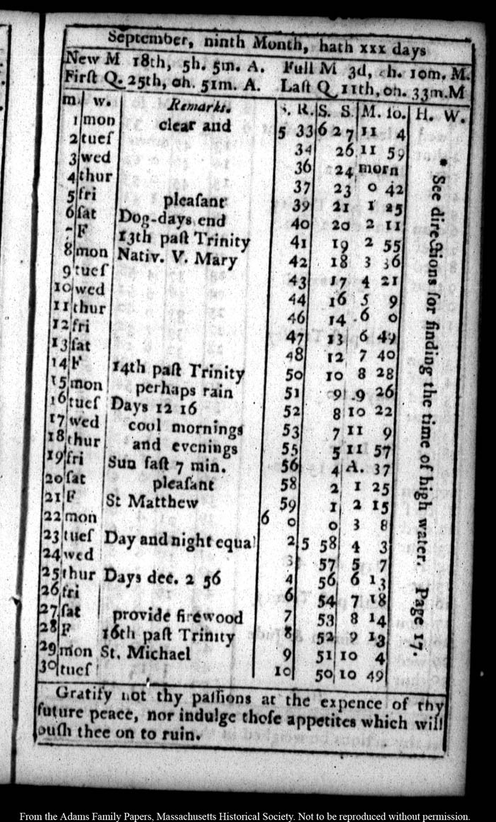 John Quincy Adams diary 25 (almanac), 1800, page 13