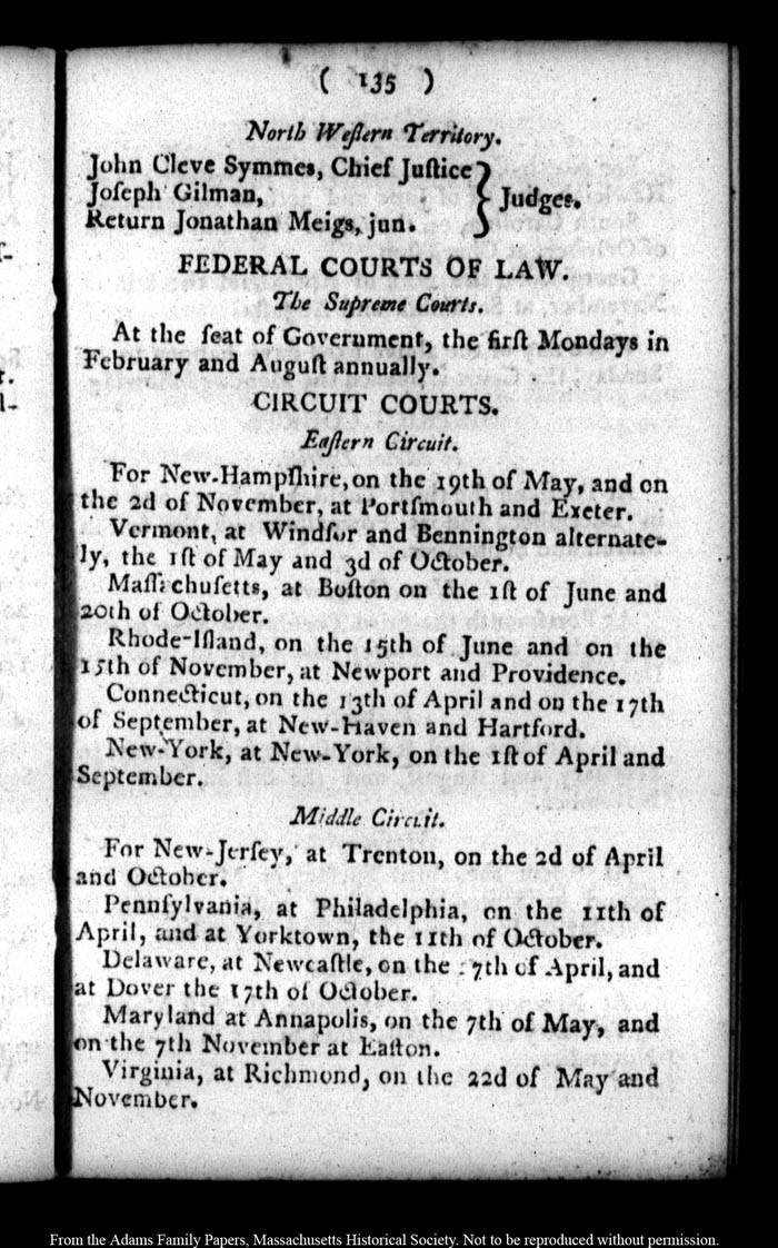John Quincy Adams diary 25 (almanac), 1800, page 135